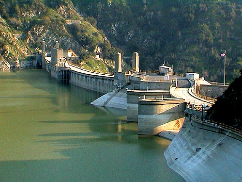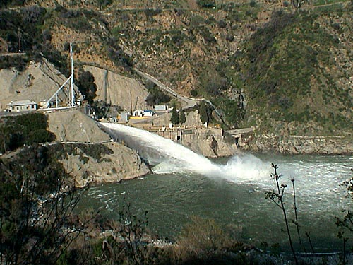 The San Gabriel Dam, with water about 12 feet from it's spillway,