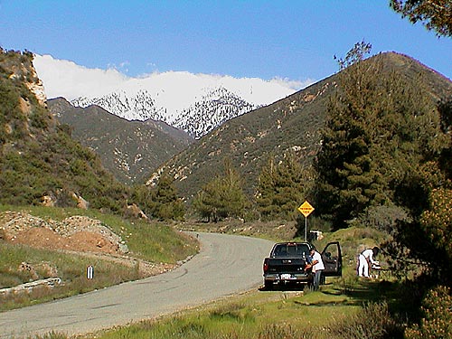 Mount San Antonio (Mt. Baldy) is viewed from near the end of Shoemaker Road.
