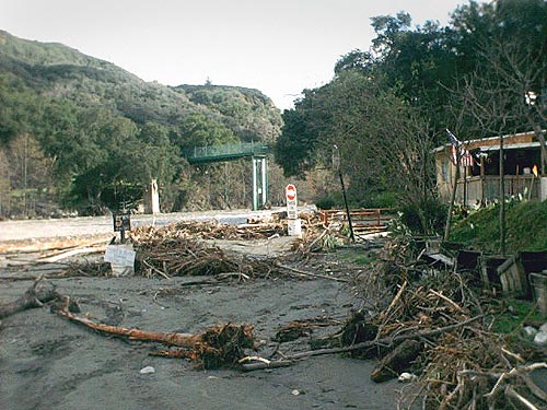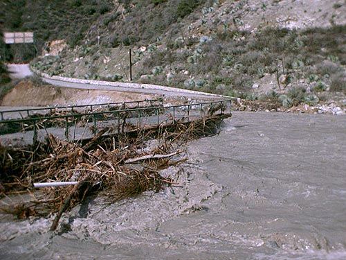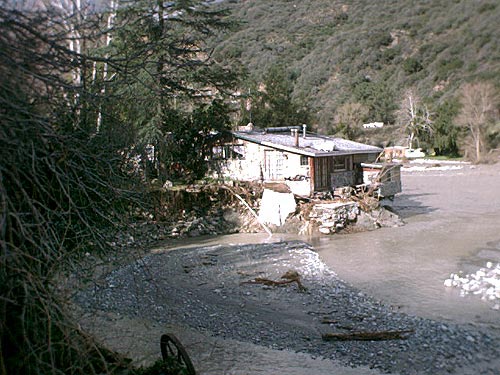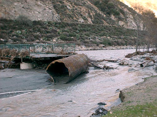 East Fork Road, Follows Camp, flooding, National Forest, San Gabriel River.