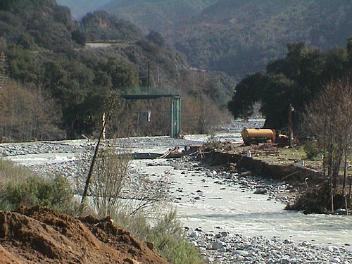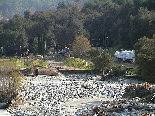 East Fork Road, Follows Camp, Camp Williams, flooding, National Forest, San Gabriel River.