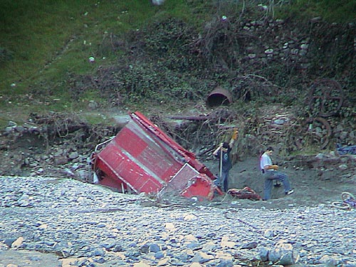 Workers work to untomb buried treasure from the river bank at Follows Camp.
